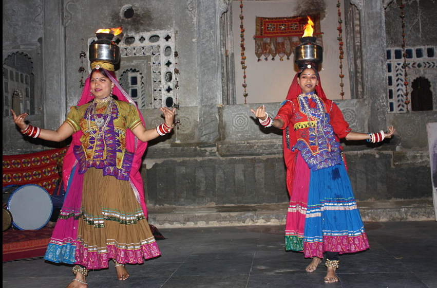 Bhavai is Rajasthan's ritualistic dance, which is usually performed by women belonging to kalbelia, jat, meena, bhill or kumhar tribal communities of the state. The dance involves women balancing eight to nine brass pitchers or earthen pots on their head as they dance and twirl with their feet on the perimeter of a brass plate or on the top of a glass. The dance is accompanied by male performers singing and playing instruments, such as harmonium, sarangi and dholak. Because of its high level of difficulty and complexity, it takes years for the performer to master the dance form.